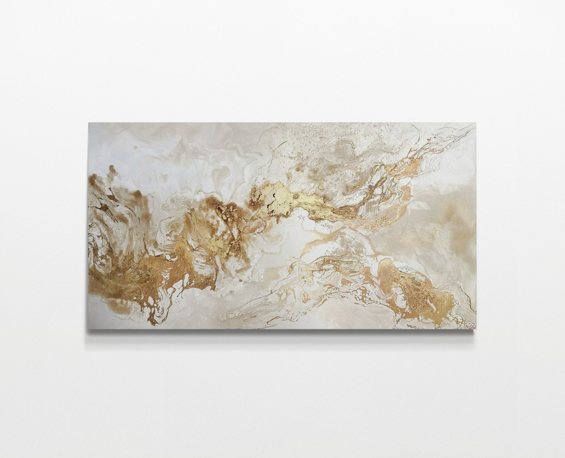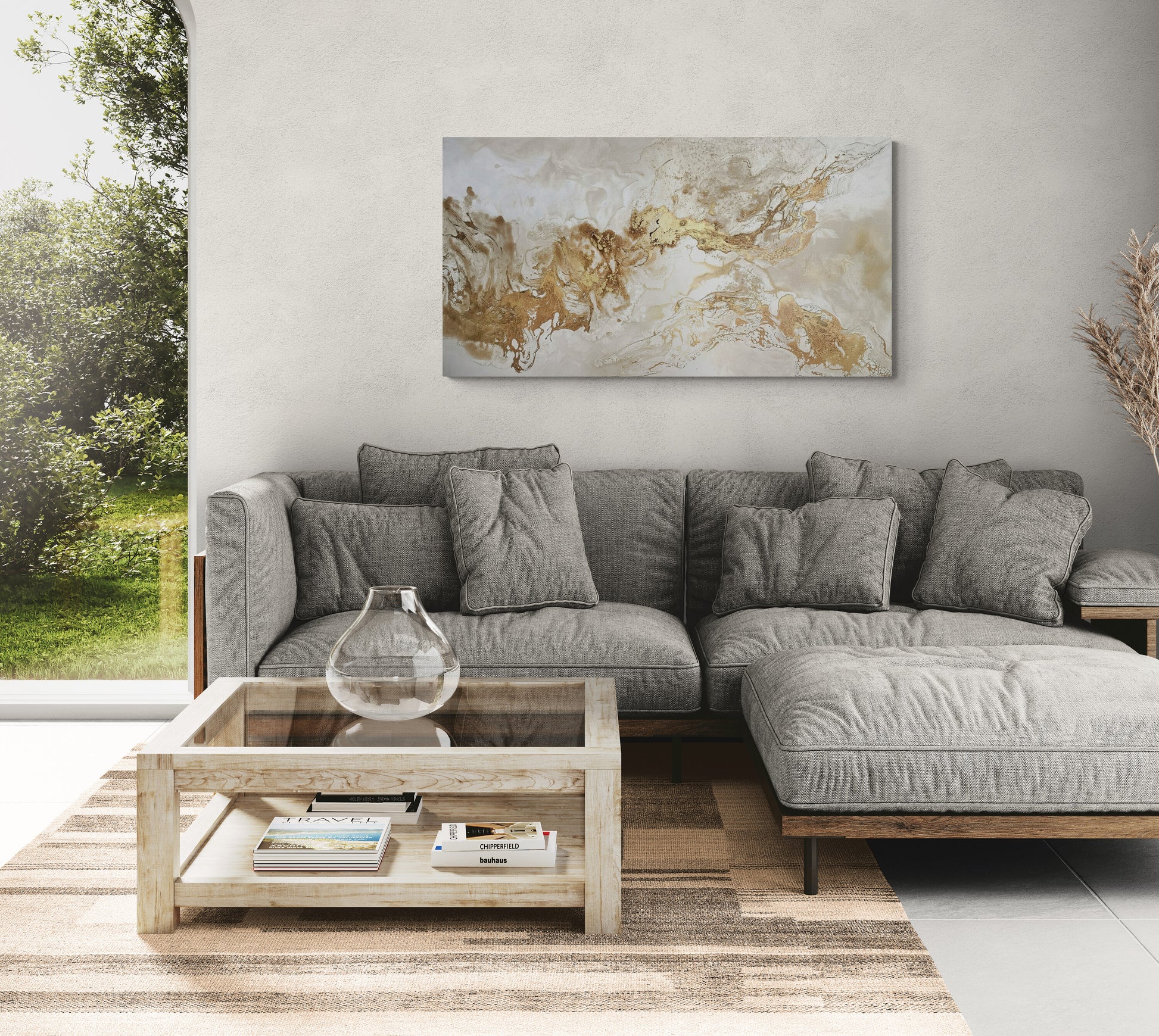 “Golden Foam” presenta destellos dorados sobre un fondo suave, evocando la ligereza de la espuma marina con un toque de lujo y sutileza, ideal para dar un aire sofisticado a cualquier espacio.