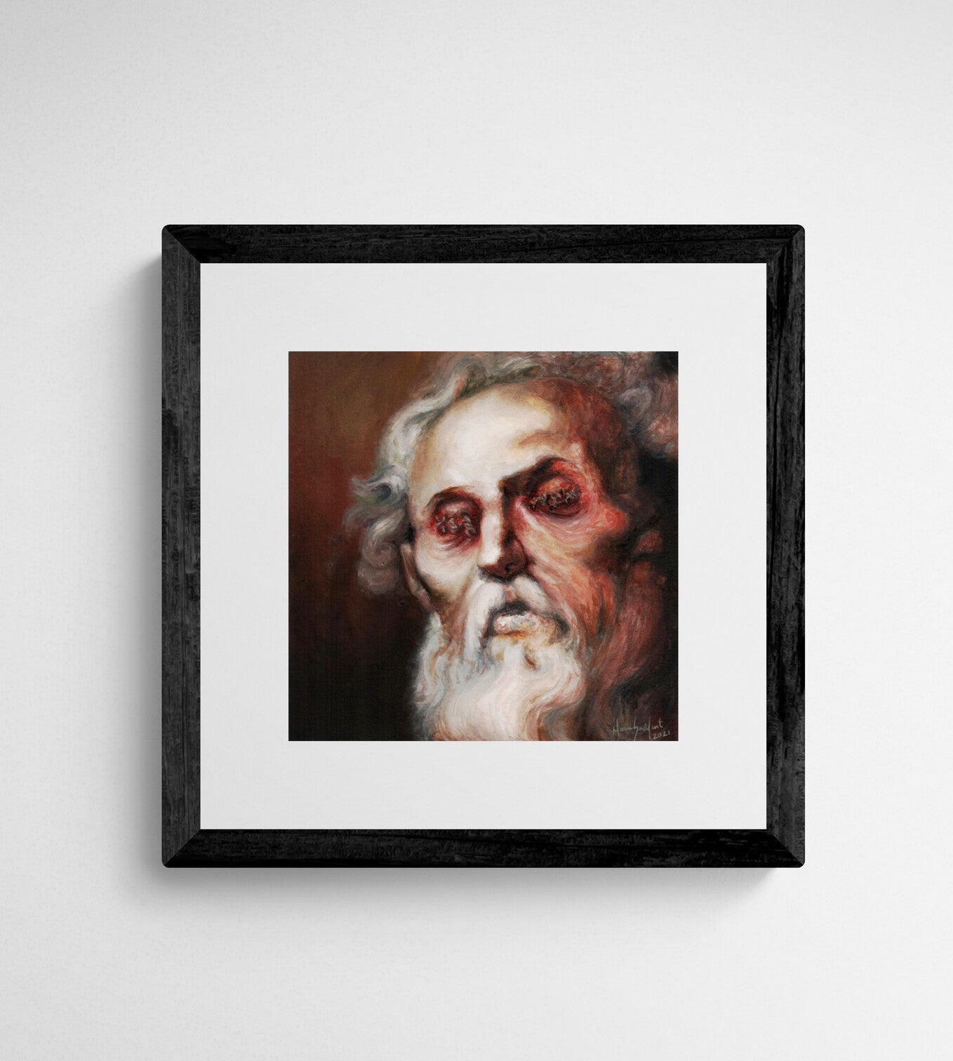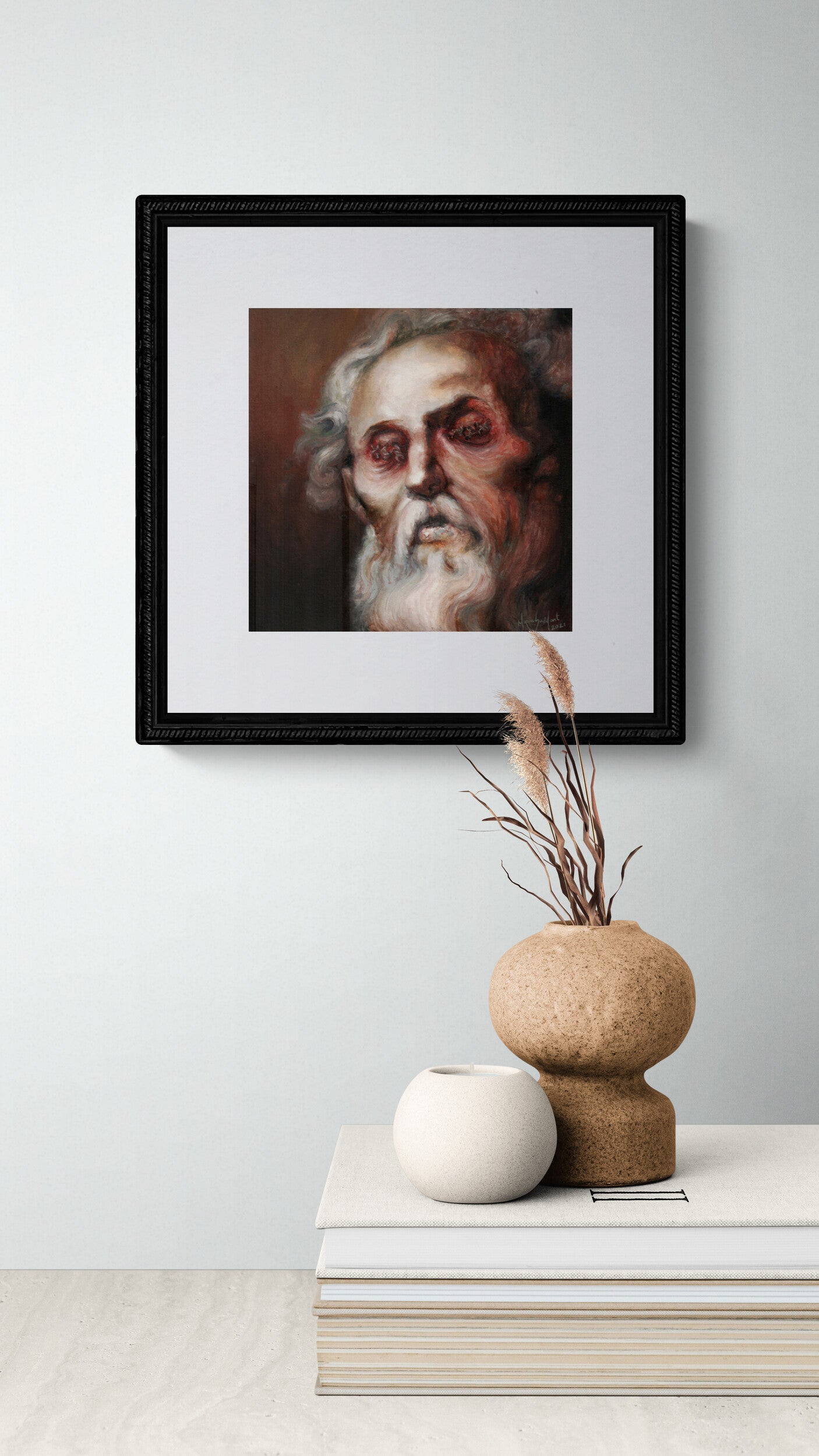 “Luz después de la envidia” representa la escena de la Divina Comedia, donde Dante observa el castigo de los envidiosos en el infierno. La obra captura la angustia de las almas castigadas, con una figura central de rostro distorsionado y ojos vacíos, evocando la oscuridad y el sufrimiento de la envidia, pero también la luz que emerge del tormento. La técnica detallada y los contrastes intensos en los tonos enfatizan la tensión entre la condena eterna y la luz que, aunque tenue, se deja entrever como símbolo de esperanza y purificación.