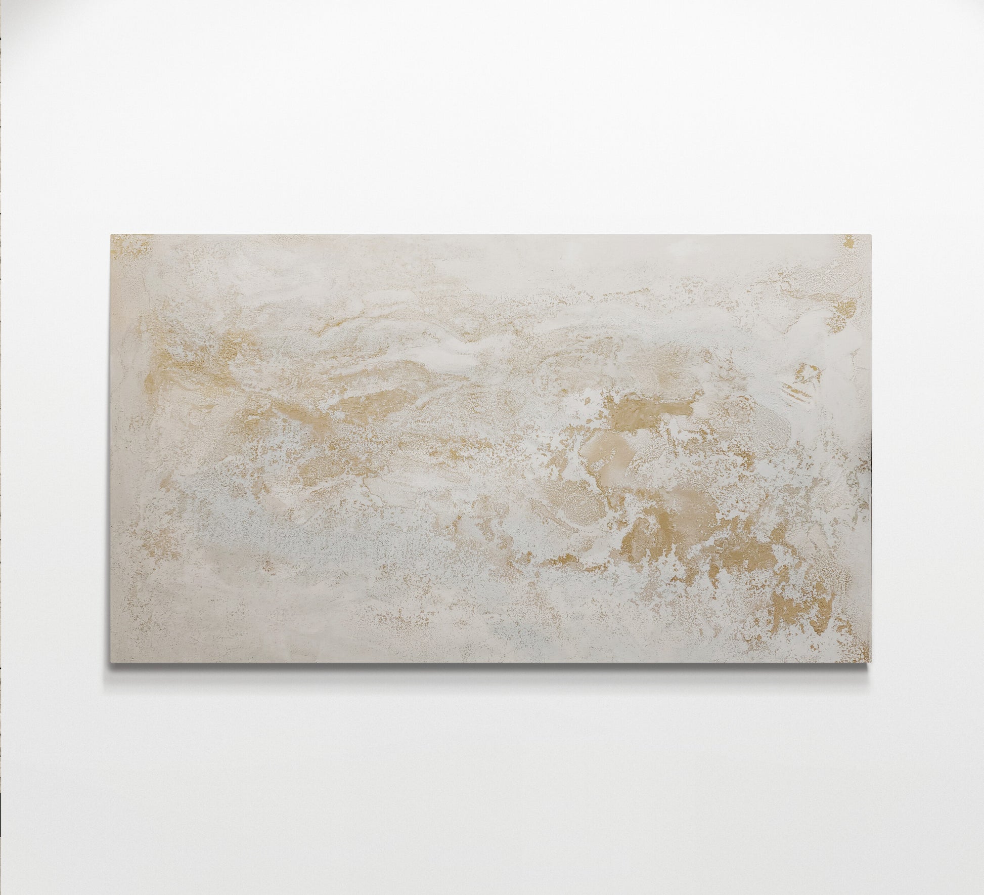 “Silencio en la ciudad” fusiona tonos crema y reflejos dorados para transmitir la serenidad que puede encontrarse en medio de una urbe bulliciosa, ofreciendo un ambiente de calma y sofisticación.