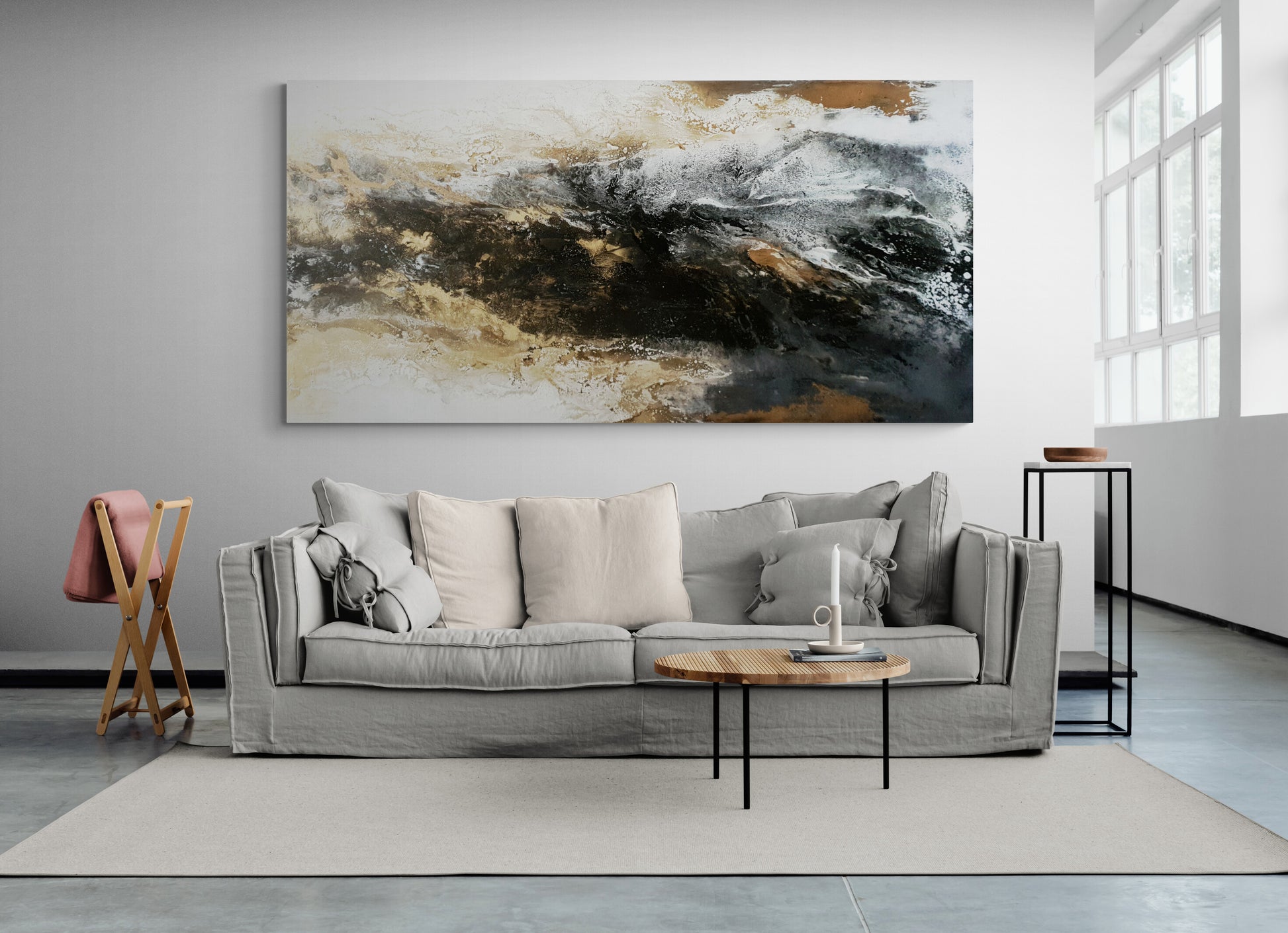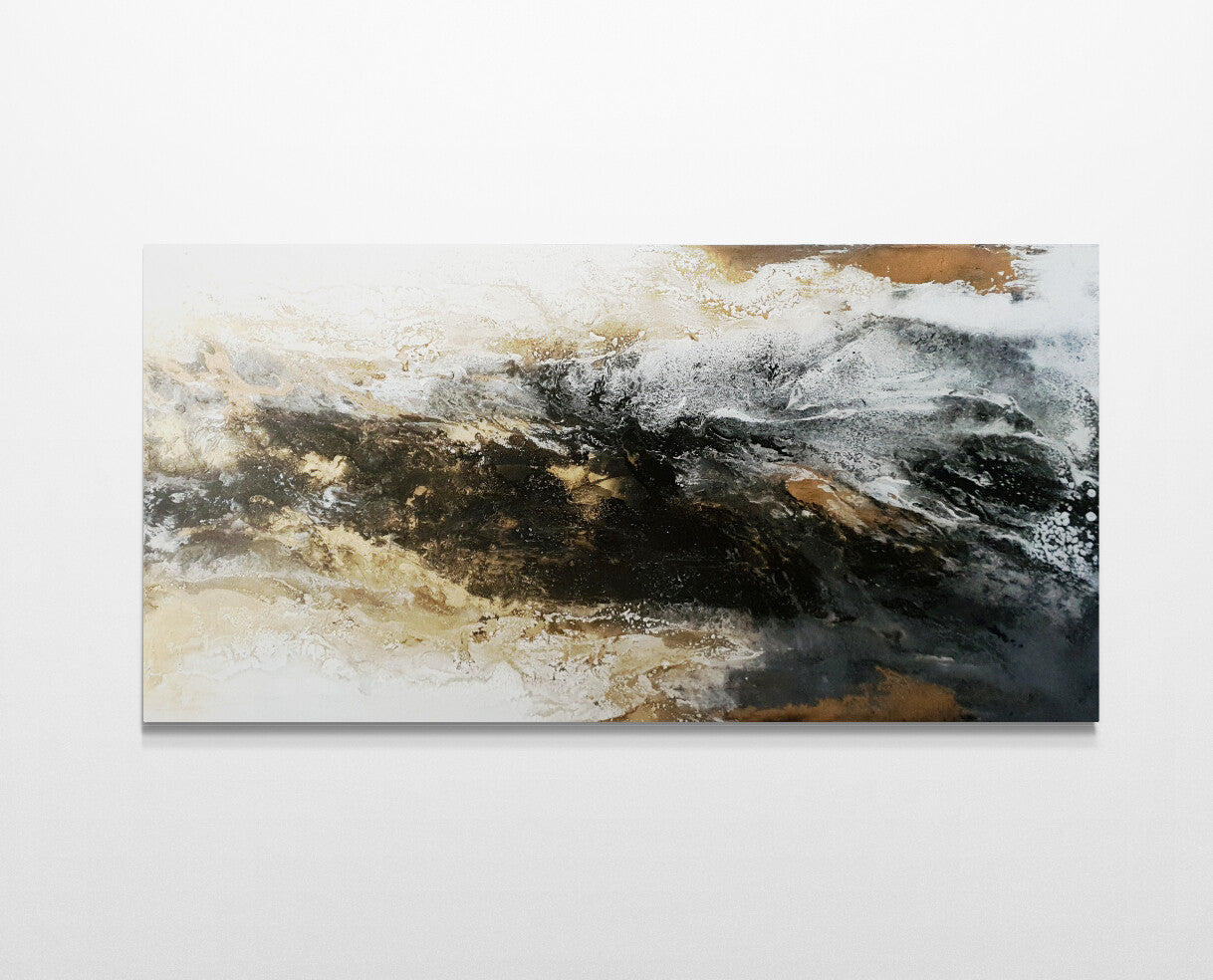“Rio Negro” fusiona profundos tonos oscuros con pinceladas doradas para evocar la energía implacable de un río subterráneo, dotando a cualquier espacio de un toque de misterio y sofisticación.