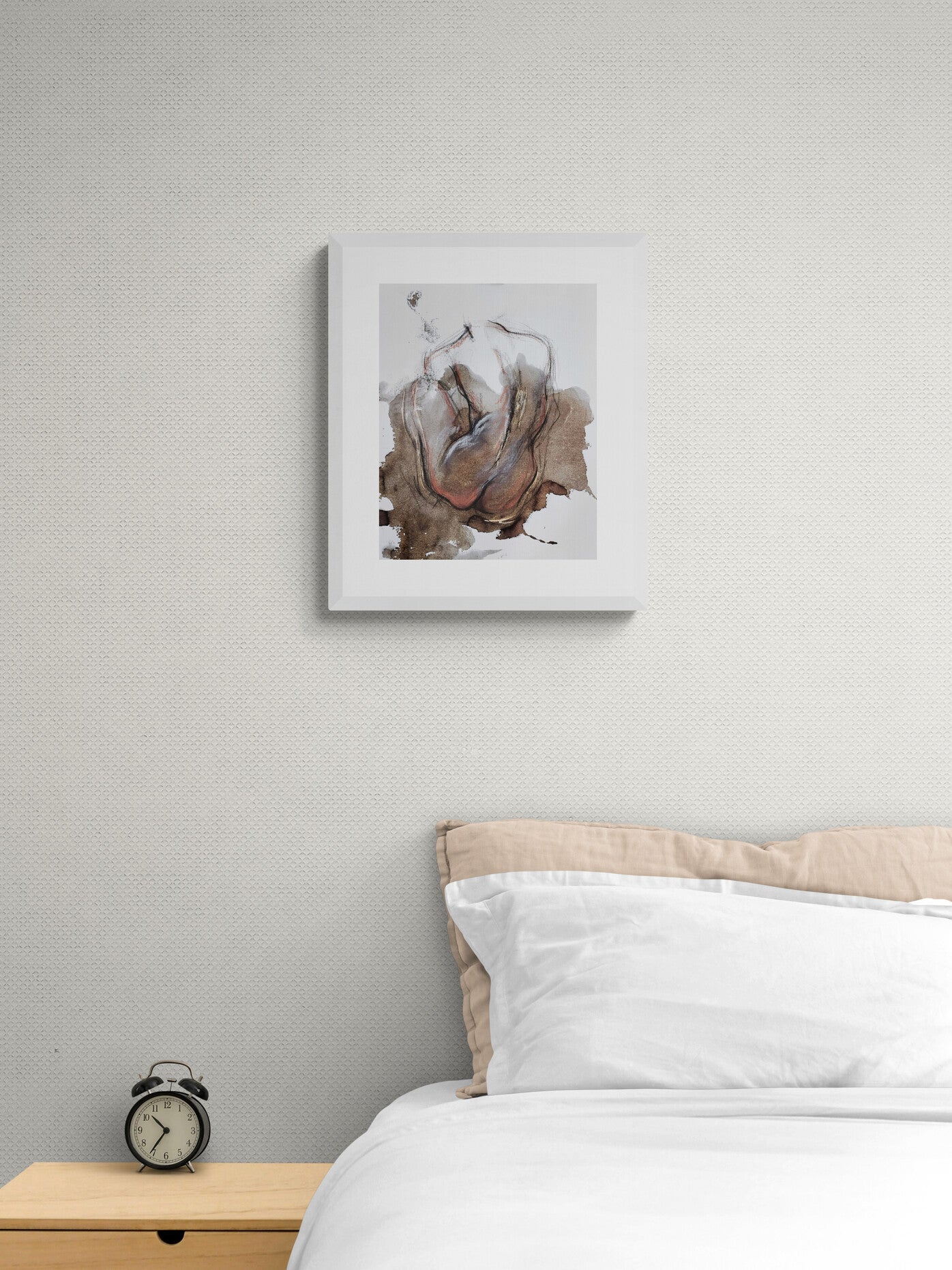 “Satisfacción” explora la complejidad de la figura humana a través de un enfoque abstracto, donde los tonos cálidos y las suaves texturas transmiten una sensación de vulnerabilidad y plenitud. La fluidez de las formas, capturando una postura evocadora, invita a la introspección sobre los sentidos y las emociones que surgen en momentos de satisfacción personal y física.